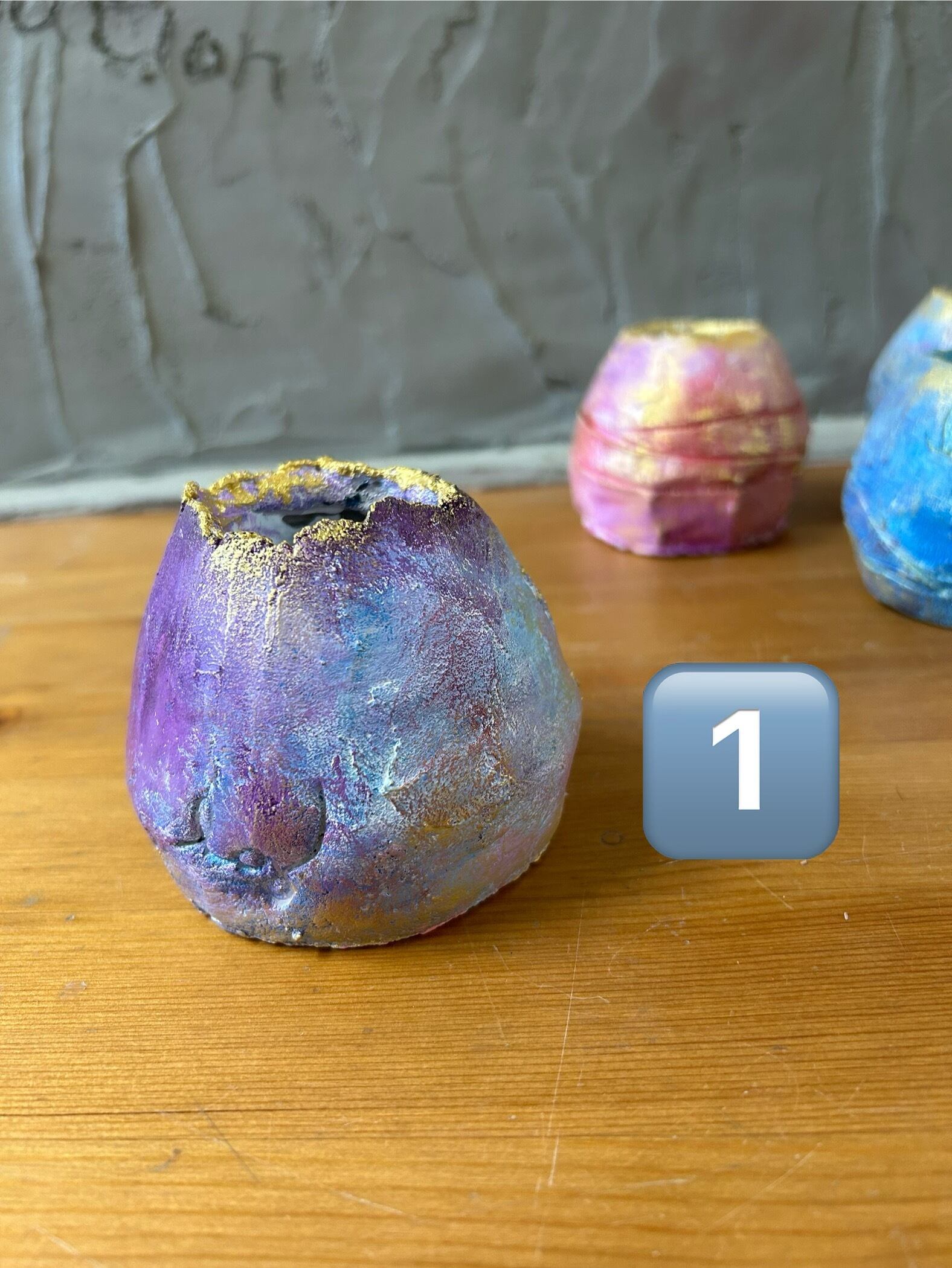 この小瓶は、モルタル製でアクリルカラーで着色されていますので、耐久性と風合いを兼ね備えています。水洗い可能なので、いつでも清潔に保つことができます。