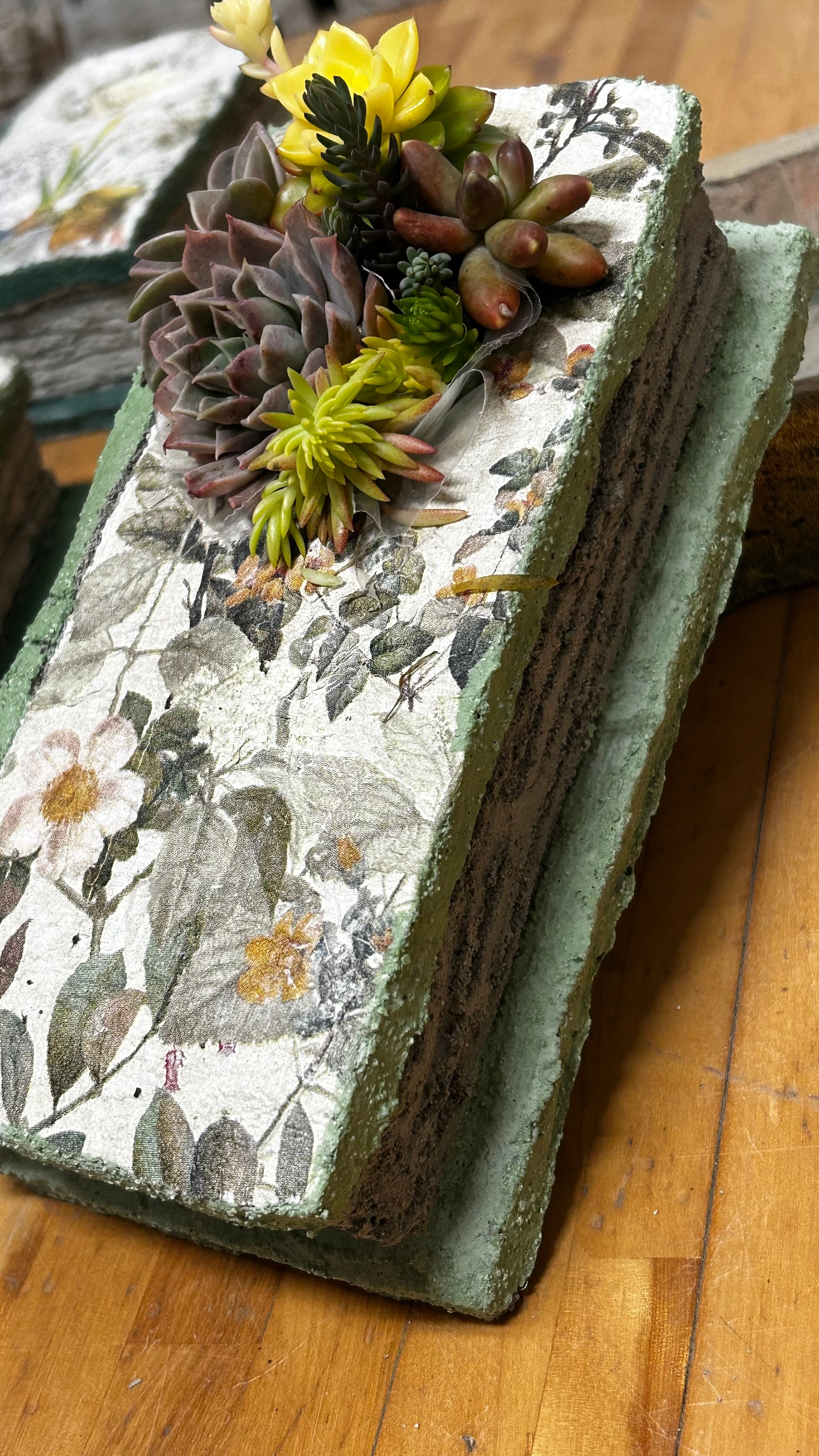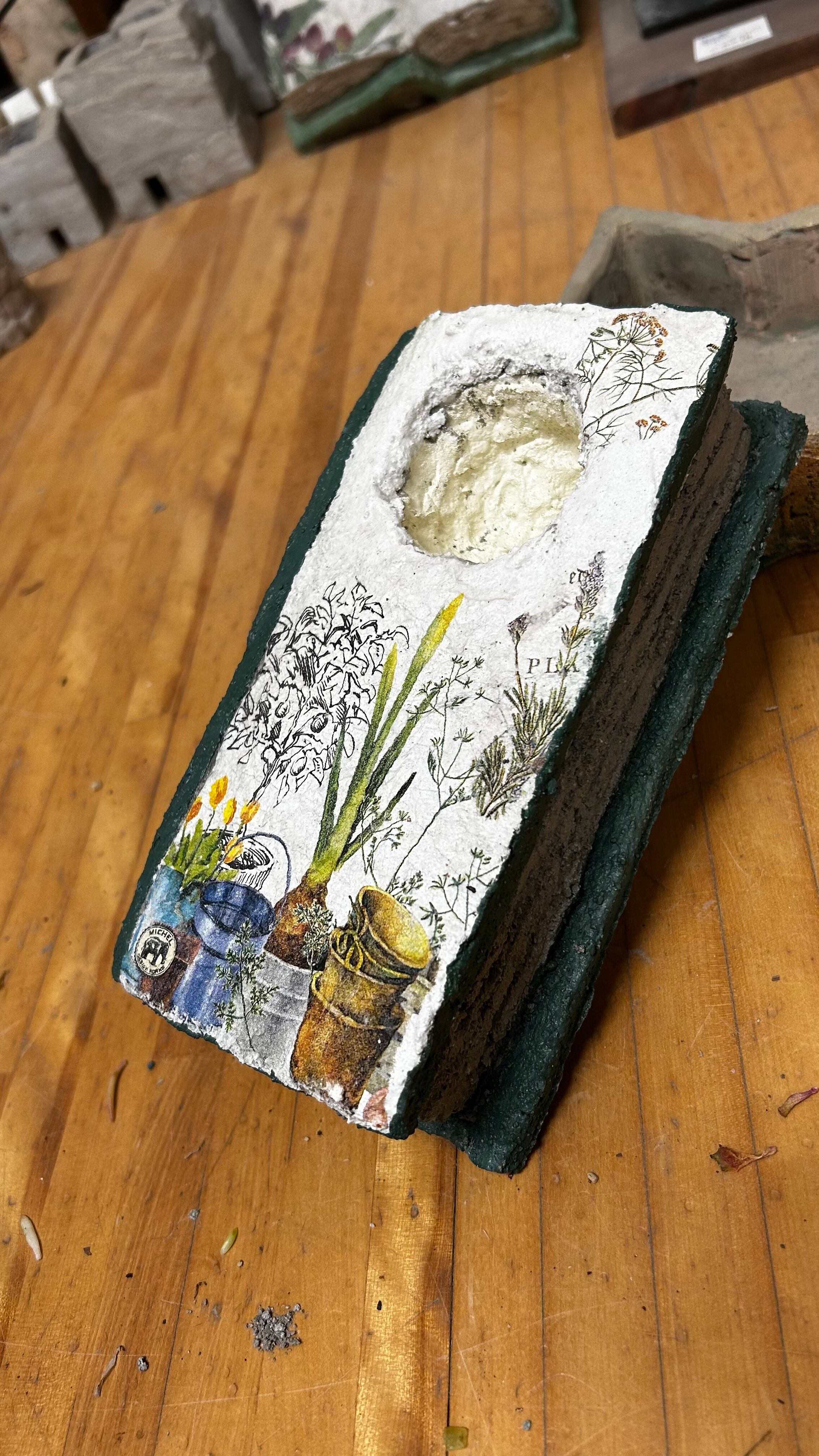 「ソイルデコのブック型プランター(閉じ型)(長)」は、モルタルで作られたプランター